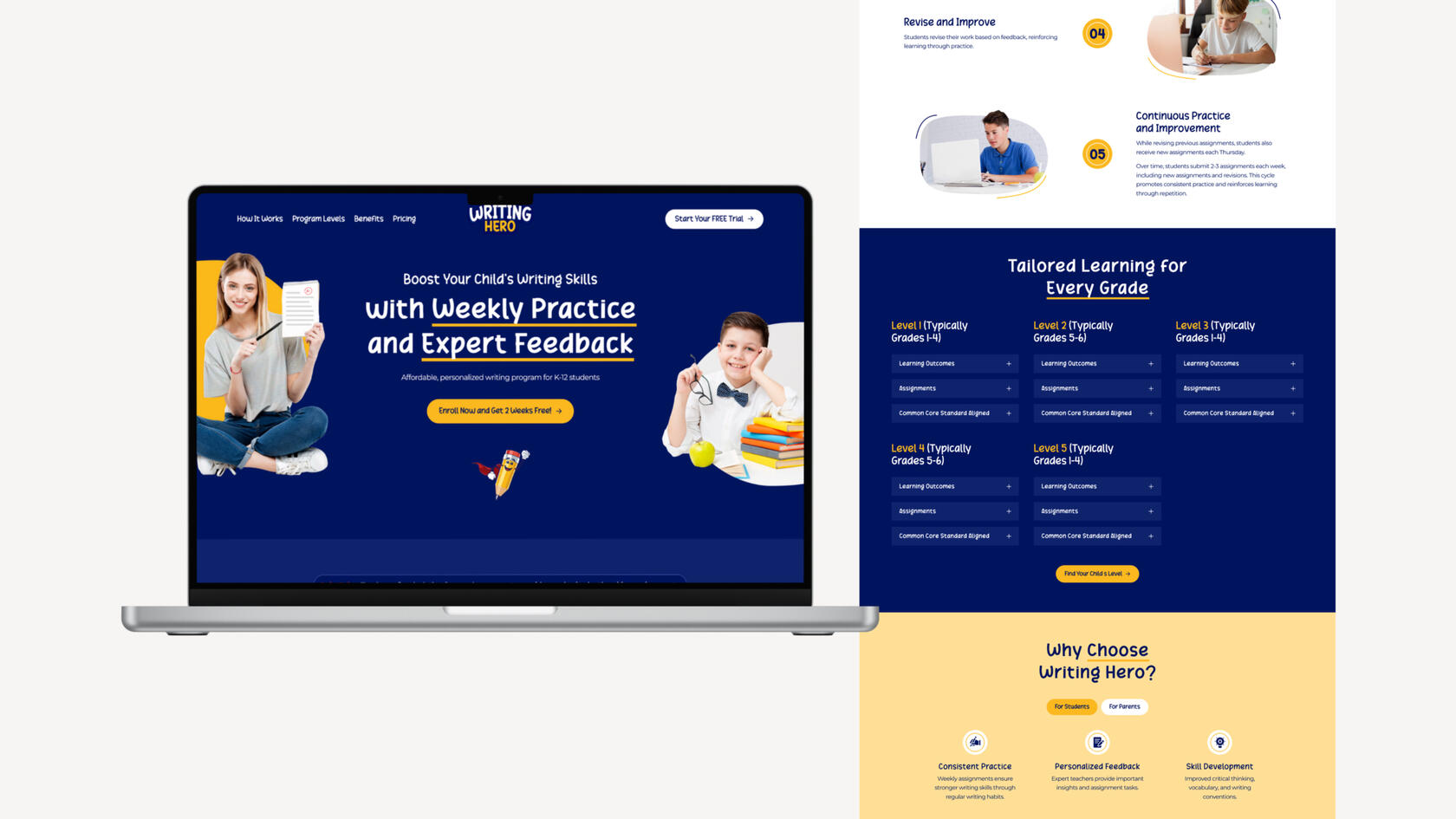 Personalized writing program, providing weekly practice and expert feedback.